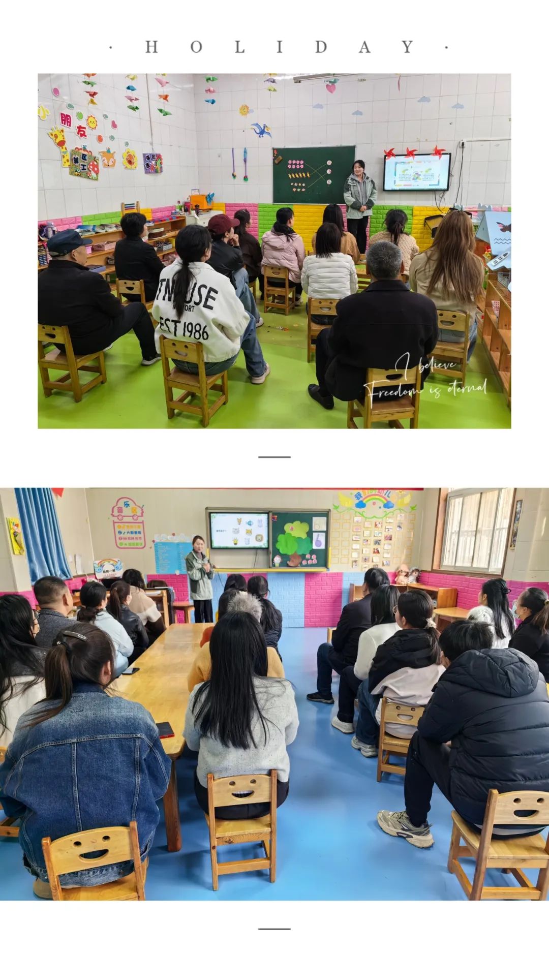 為進(jìn)一步貫徹落實(shí)《幼兒園教育指導(dǎo)綱要》《3—6歲兒童學(xué)習(xí)與發(fā)展指南》精神,提升幼兒園保教質(zhì)量,提高教師的教育教學(xué)水平,全面了解各年齡段幼兒的發(fā)展?fàn)顩r和班級(jí)的教學(xué)成果,進(jìn)一步感受孩子們的進(jìn)步與發(fā)展,一禾專業(yè)幼小銜接龍?jiān)春^(qū)/一禾龍?jiān)春變簣@于3月27、28日開展了以班級(jí)為單位的教育教學(xué)成果月末展示活動(dòng)及家長(zhǎng)會(huì)。