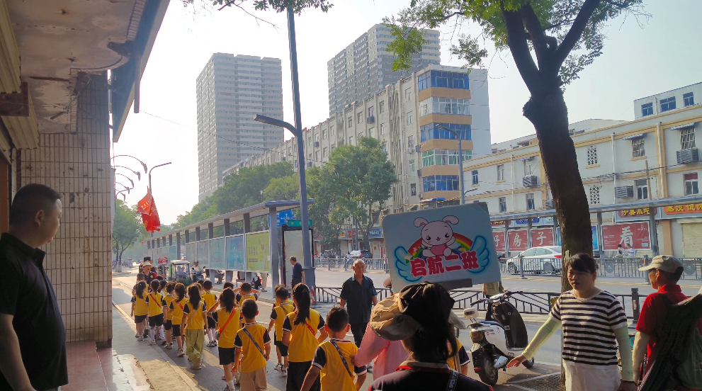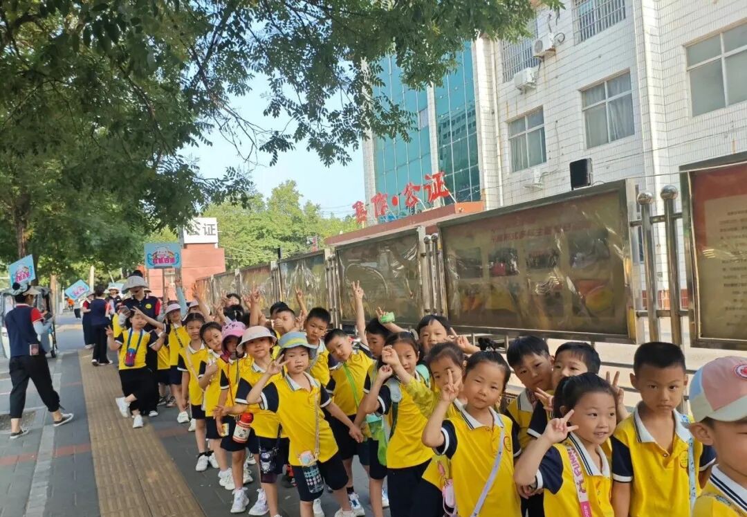 孩子們排著隊(duì)手拉手,在一路的期待下,終于來(lái)到了解放東路第二小學(xué)。